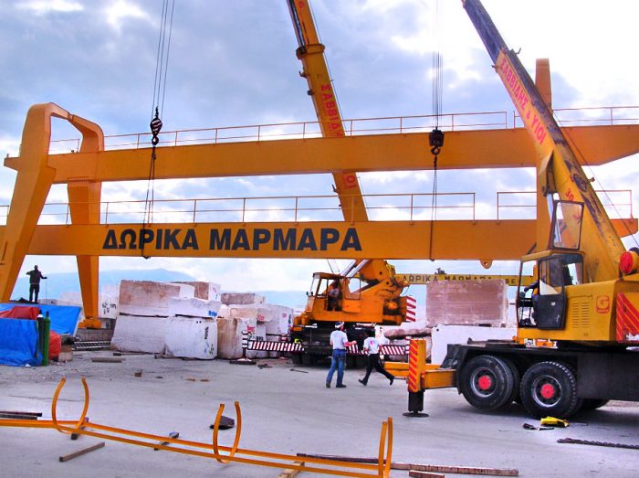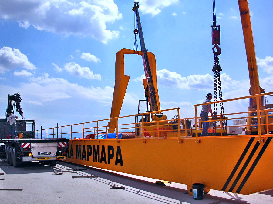 Κατασκευή 2 εξωτερικών γερανογεφυρών (πυλώνα) ανυψωτικής ικανότητας 32tn με άνοιγμα ποδαρικών 20m και 5m πρόβολο εκατέρωθεν. Ο εξοπλισμός είναι της Demag.